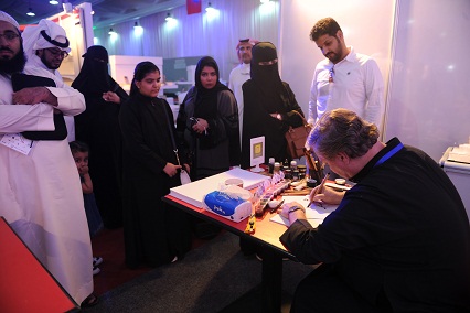 بترحاب كبير يستقبل الخطاط المهندس سراج علاف وفريق عمله من الخطاطين “راجا بلهادر، أحمد الجعير، سارة كتبي، بيان باربود”، الراغبين في الحصول على فواصل للكتب مخطوطة باليد في ركن الخطاطين بالمعرض رقم 2010 يوميا من الساعة “5-10” مساء.