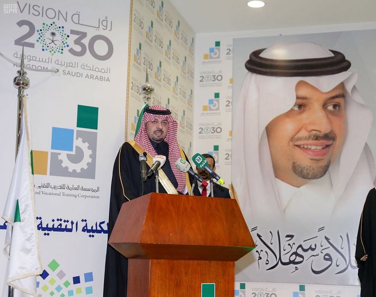 ووجه سموه الشكر للمؤسسة العامة للتدريب التقني والمهني ومنسوبيها لما يقومون به من دور كبير في تأهيل شباب الوطن فنياً ومعرفياً ومهارياً ليكونوا أصحاب قيمة مضافة في سوق العمل السعودي، مثمناً جهود المؤسسة في تطوير برامجها التدريبية التقنية والمهنية وكلياتها خصوصاً مبادرة كليات التميز وهي جهود مقدرة ومؤثرة في تنمية وتأهيل شبابنا لسوق العمل.