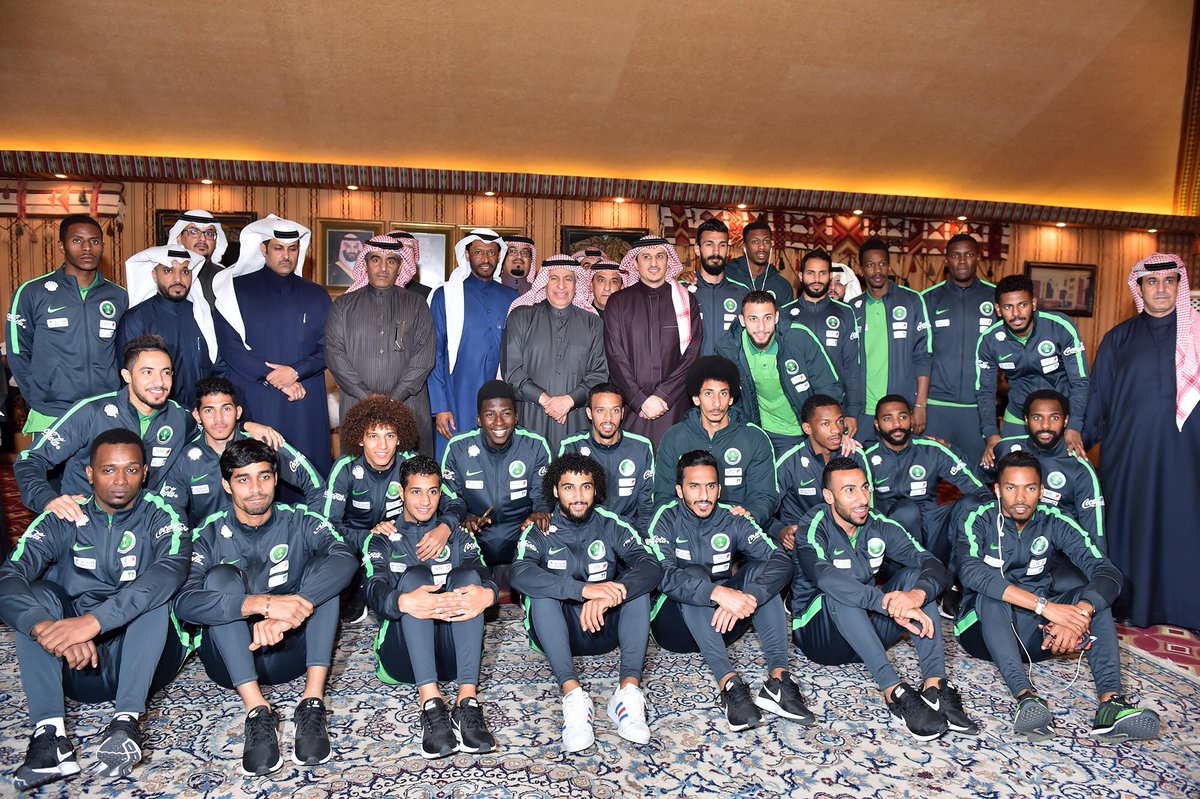 ونشر حساب المنتخب السعودي الرسمي على “تويتر”، صورًا تذكارية خلال استقبال الفايز لبعثة الأخضر، ثم تناول الجميع وجبة العشاء، وتسلم سفير المملكة هدية تذكارية من رئيس البعثة نواف التمياط، تقديرًا لدعمه واهتمامه بالبعثة منذ وصولها الكويت.