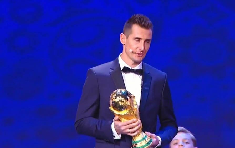 سلم الألماني ميروسلاف كلوزه، بطولة كأس العالم إلى اللجنة المنظمة لمونديال روسيا 2018، قبل سحب قرعة البطولة.