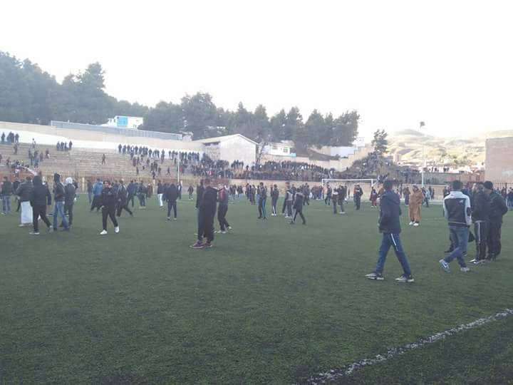 وبدأت الأحداث الدامية عند انطلاق الشوط الثاني من المباراة رغم أن النتيجة كانت متعادلة؛ حيث اندلعت مواجهات عنيفة بين مشجعي الفريقين بمدرجات الملعب استُعملت فيها الحجارة والألعاب النارية والأسلحة البيضاء، وهو ما دفع بالحكم إلى إيقاف المباراة بعد بداية الشوط بدقائق، وذلك إثر اقتحام الجمهور لأرضية الميدان، قبل أن تمتد أعمال الشغب إلى خارج الملعب، ثم وسط المدينة.