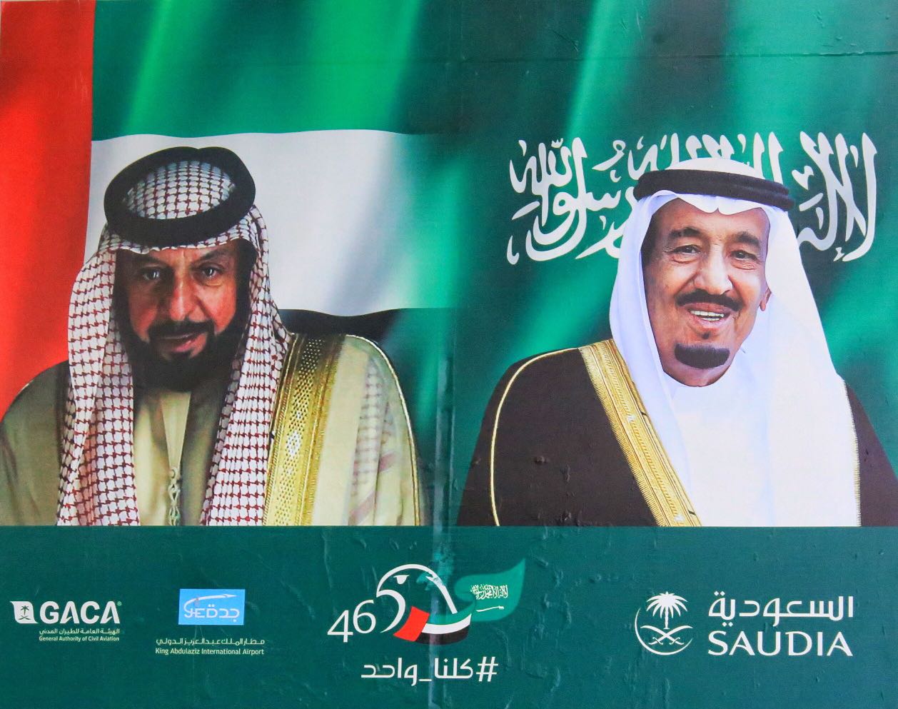 احتفت الخطوط السعودية اليوم بمناسبة اليوم الوطني لدولة الإمارات العربية المتحدة، في الأجواء وفي صالات المغادرة والوصول في العديد من مطارات المملكة، فيما اكتسى المقر الرئيسي للمؤسسة العامة للخطوط الجوية العربية السعودية بمحافظة جدة حلة زاهية بهذه المناسبة وتزين بصور القيادة في البلدين، بالإضافة إلى علمي البلدين مع عبارة تهنئة لدولة الإمارات حكومة وشعبًا بمناسبة اليوم الوطني السادس والأربعين.