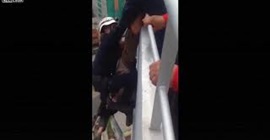 وظهر رجال الإنقاذ في مقطع فيديو يحاولون بيأس الإمساك بيد الرجل وسحبه بعد أن حاول القفز من شرفة وأصبح عالقًا بواسطة حبل على حافة مبنى شاهق.