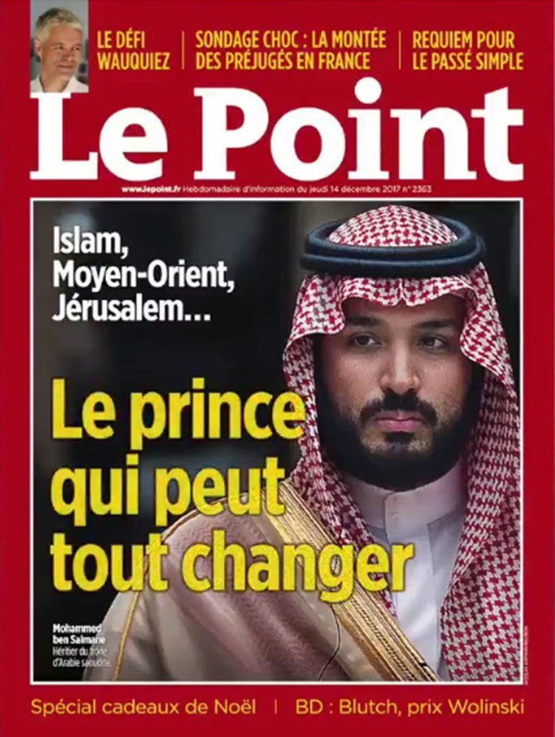 “الأمير الذي يستطيع تغيير كل شيء”.. بهذه العبارة وصفت مجلة Le Point الفرنسية ولي العهد الأمير محمد بن سلمان، حيث وضعت صورته لتتصدر غلاف عددها الجديد.