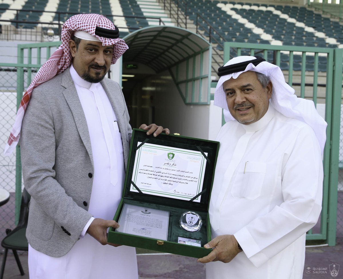 سلم رئيس مجلس إدارة النادي الأهلي، الأمير تركي بن محمد العبدالله الفيصل، العضوية الشرفية الماسية للأمير منصور بن مشعل بن عبدالعزيز آل سعود، لينضم بذلك لهيئة أعضاء شرف الراقي.