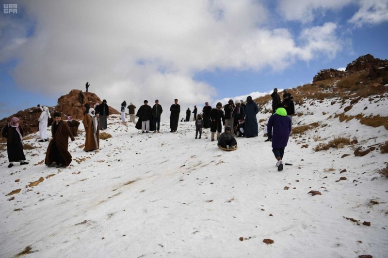 وشهد مركزي علقان واللوز تساقط للأمطار والثلوج التي جذبت أعداد كبيرة من العوائل والأسر، التي خرجت من مدينة تبوك والمحافظات التابعة، وأيضًا من خارج المنطقة لمشاهدة هذا الزائر السنوي الذي يكسو تلال وجبال وأودية المناطق الشمالية من تبوك كل عام، وسط متابعة من كافة القطاعات الحكومية الأمنية والمرورية والطرق والهلال الأحمر والدفاع المدني وحرس الحدود التي أعلنت عن استعداداتها المبكرة لمواجهة أي طارئ- لا قدّر الله- وشهدت الطرق المؤدية إلى هذه المواقع حركة مروية عالية بتواجد للدوريات المروية وأمن الطرق لتسهيل حركة السير وتوجيه سالكي الطرق.
