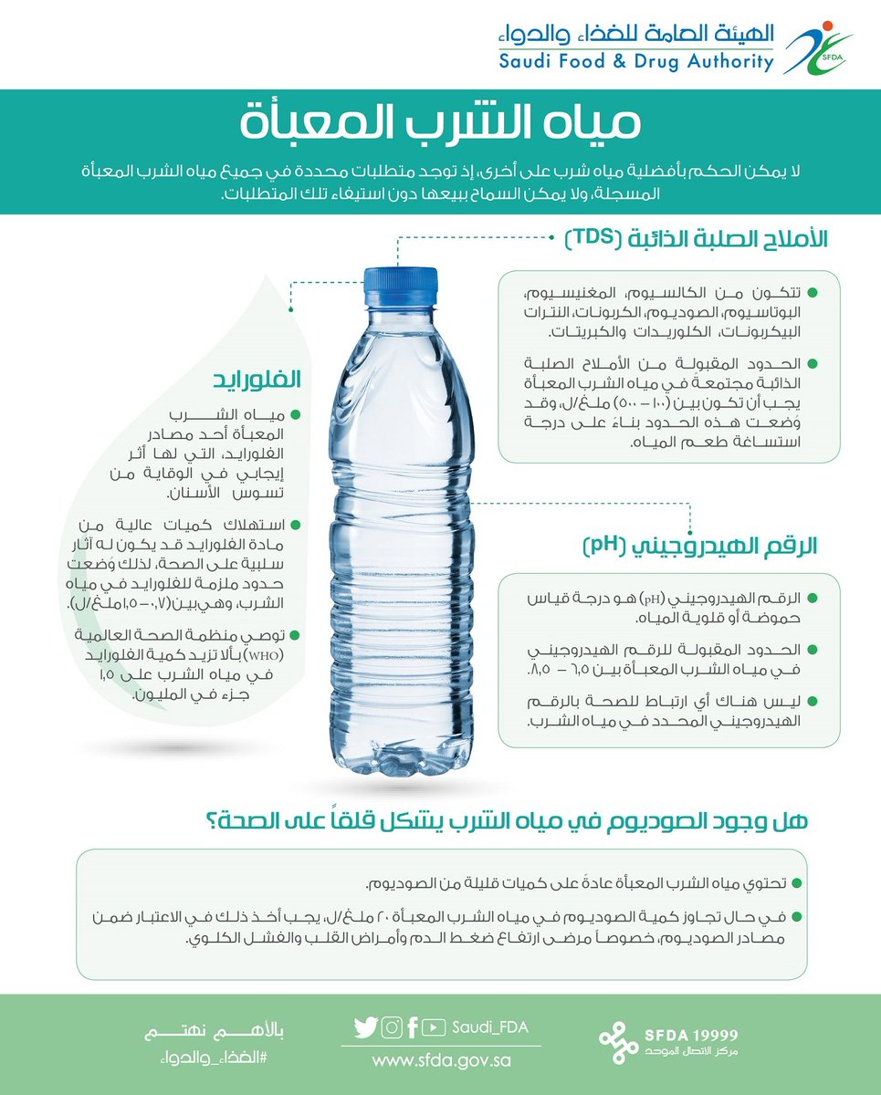 شددت الهيئة العامة للغذاء والدواء، على أنها لن تسمح ببيع أي مياه شرب معبأة دون استيفاء الشروط والمتطلبات، وعلى هذا الأساس، لا توجد أفضلية لمياه شرب معبأة على غيرها.