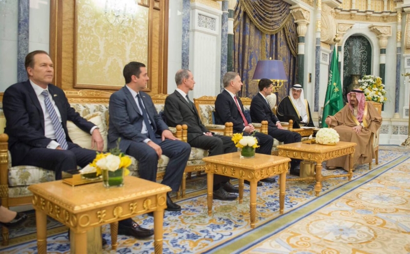 استقبل خادم الحرمين الشريفين الملك سلمان بن عبدالعزيز آل سعود ـ حفظه الله ـ في مكتبه بقصر اليمامة في الرياض اليوم، رئيس مجلس النواب الأمريكي بول رايان.