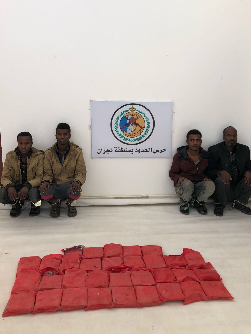 صرّح المتحدث الرسمي لحرس الحدود، أنّه بناء على الجهود الأمنية المستمرة في مكافحة تهريب المخدرات عبر الحدود البرية والبحرية للمملكة تمكّن رجال حرس الحدود بمنطقتي جازان ونجران خلال الفترة من ٢٨ / ٣ / ١٤٣٩هـ إلى ١٢/ ٤/ ١٤٣٩هـ من إحباط عدة محاولات لتهريب كميات كبيرة من مادة الحشيش المخدر.