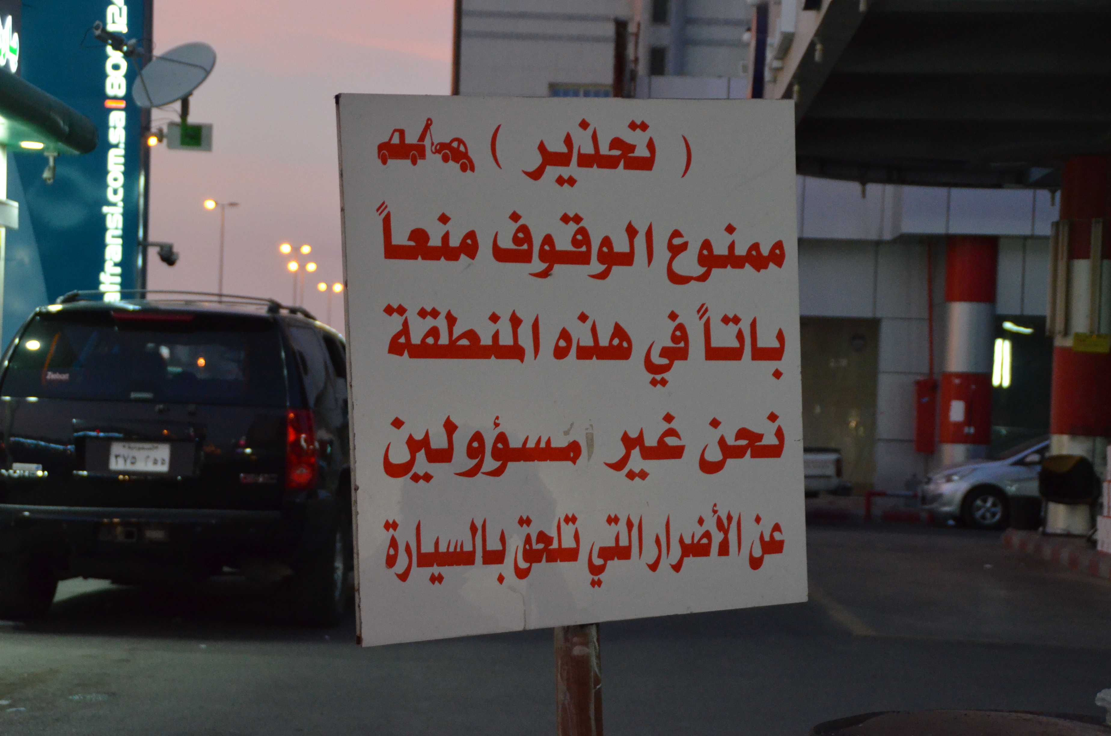 ووثَّقت “المواطن” بالصور، قيام المحطة بوضع لوحة كتبت عليها: “تحذير ممنوع الوقوف منعًا باتًّا في هذه المنطقة نحن غير مسؤولين عن الأضرار التي تحلق بالسيارة”.