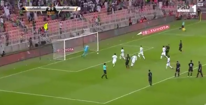 قلص النادي الأهلي الفارق مع الشباب من ركلة جزاء عن طريق لاعبه فيتفاتزيديس في الدقيقة 40 من أحداث الشوط الأول، لتُصبح النتيجة 2/1 لصالح الليث.