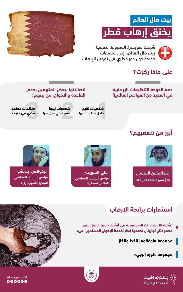بدأت حكومة سويسرا، الشهيرة ببيت مال العالم، التحقيقَ حول دعم قطر تنظيمات إرهابية في عدة عواصم حول العالم عبر شخصيات وشركات مشبوهة.