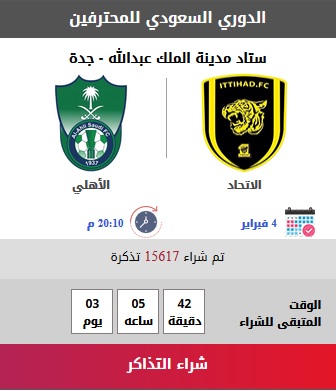 يبدو أن مباراة الأهلي والاتحاد، المُقرر إقامتها، يوم الأحد المقبل، ضمن منافسات الجولة العشرين من الدوري السعودي للمحترفين، ستشهد حضورًا جماهيريًّا كبيرًا للغاية.