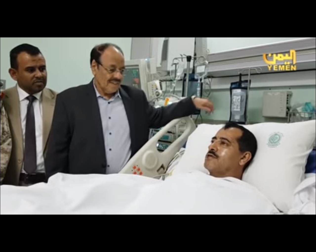 ووثق الفيديو الذي نشرته قناة اليمن، زيارة نائب رئيس الجمهورية اليمني الفريق علي محسن صالح للاطمئنان على حالة اللواء العقلي.