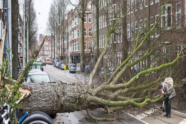 وقُتِل رجل يبلغ من العمر 62 عامًا في بلدة أولست وسط هولندا بسبب تساقط أشجار، عندما خرج من شاحنته لإزالة مخلفات تسُدّ الطريق.