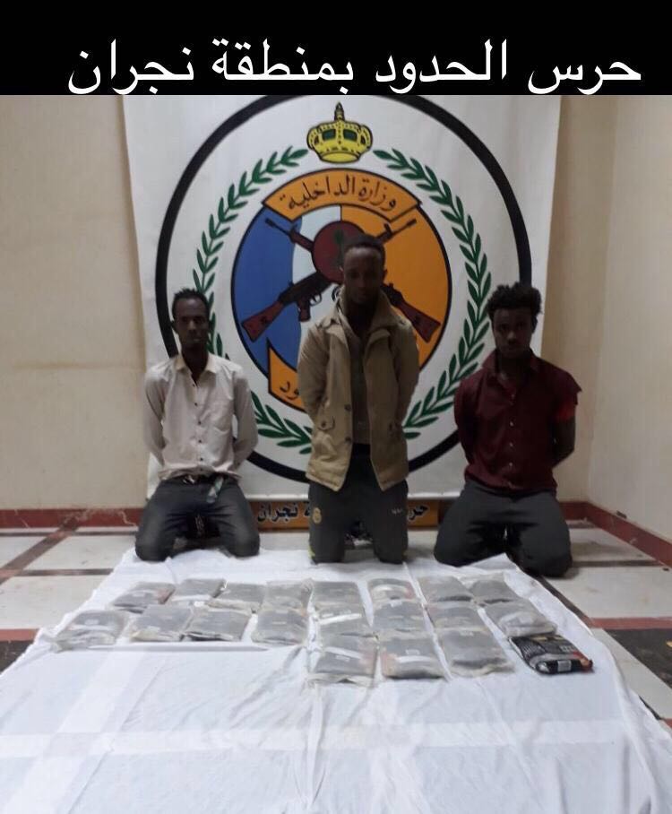 وأوضح المتحدث الرسمي أنه تم ضبط (٣٥) خمسة وثلاثين شخصًا؛ أثناء محاولتهم تهريب المواد المخدرة للمملكه عبر حدودها الجنوبية، مما تطلب التعامل معهم بما يقتضيه الموقف، والقبض على عدد (٢٨ ) ثمانية وعشرين شخصاً من الجنسية الأثيوبية و(٢) اثنين من الجنسية اليمنية و( ٤) أربعة أشخاص من الجنسية الصومالية، و(١)شخص واحد سعودي الجنسية وبحوزتهم المواد المخدرة، وفي حينه تم إحالة المضبوطات والأشخاص إلى الجهات المختصة لإكمال الإجراءات النظامية.