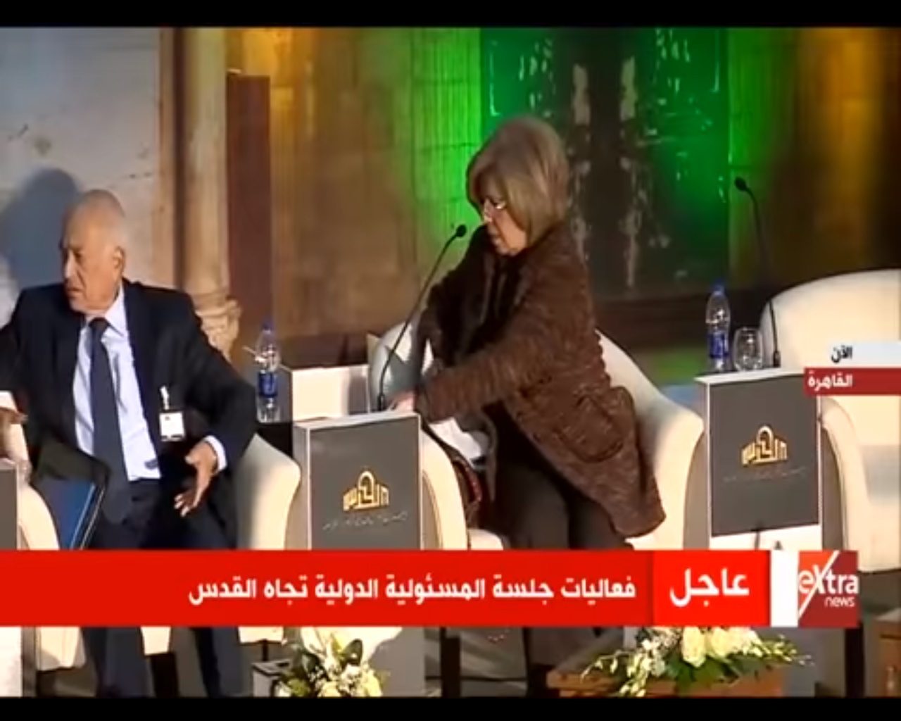 تسبب ميكروفون في حرج للأمين العام الأسبق لجامعة الدول العربية عمرو موسى، حيث سخرت منه السفيرة مشيرة خطاب، المرشحة السابقة على مقعد رئاسة منظمة اليونيسكو، بعد ارتباك الأخيرة من عطل في الميكرفون الخاص بها.