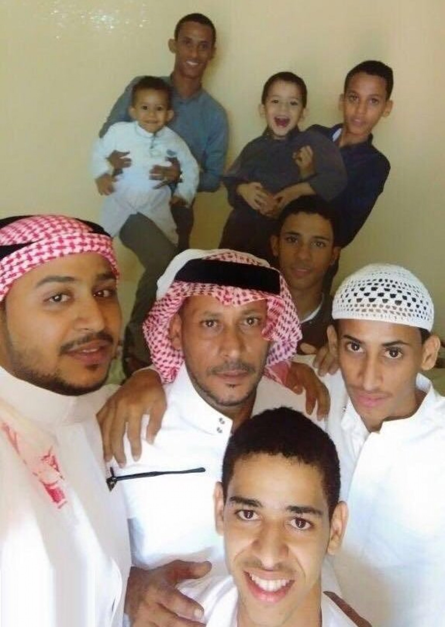 وبينت الصورة المواطن النعمي وهو يتوسط أبناءه المتوفين، حيث ضمت 4 من كبار أبنائه وهم ملتفون حوله، ويحملون أشقاءهم الصغار في الخلفية.