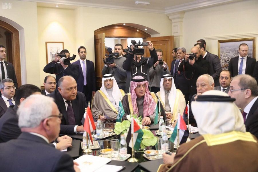 شارك وزير الخارجية الأستاذ عادل بن أحمد الجبير في اللقاء الوزاري العربي بشأن القدس الذي ضم وزراء خارجية المملكة الأردنية الهاشمية، وجمهورية مصر العربية، ودولة الإمارات العربية المتحدة، ودولة فلسطين، والمملكة المغربية، وبمشاركة الأمين العام للجامعة العربية، الذي عقد في العاصمة الأردنية عمان اليوم.