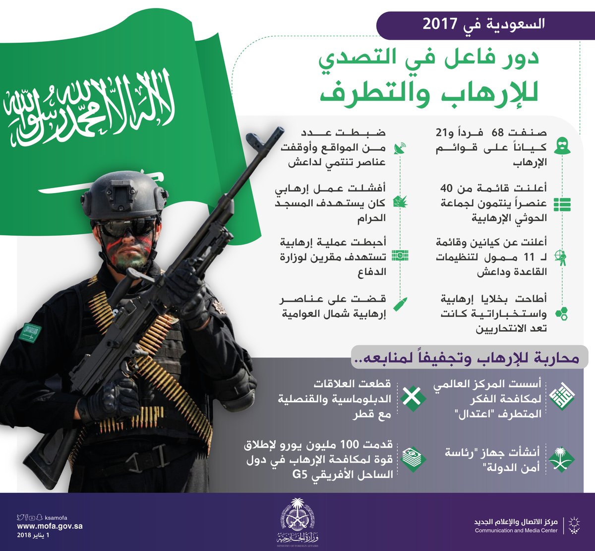 إنجازات عديدة قدمتها المملكة ضمن مساعيها لمواجهة الإرهاب داخليًّا وخارجيًّا خلال عام 2017.