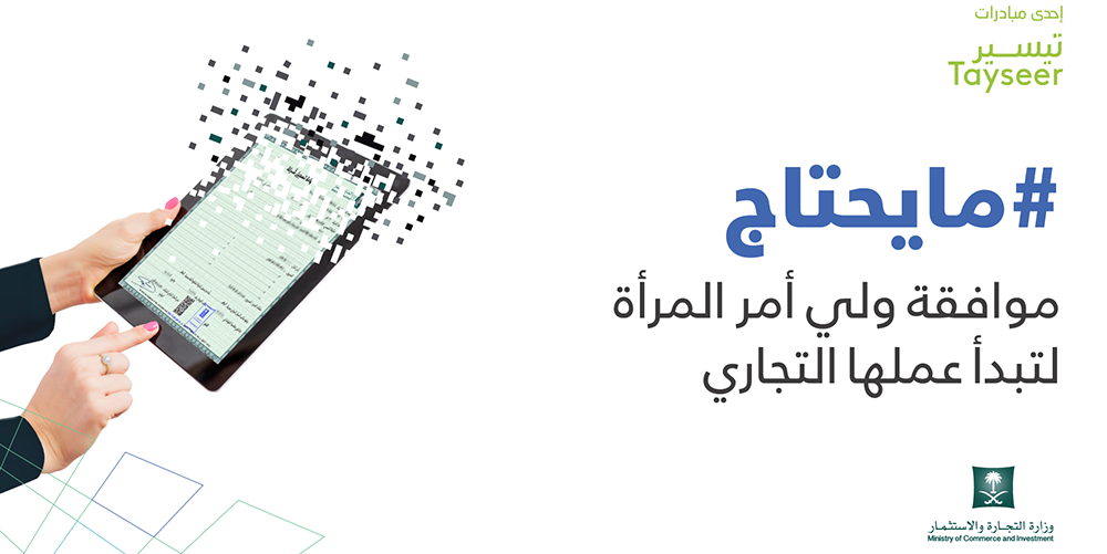 وغرد المتحدث باسم وزارة التجارة عبد الرحمن الحسين عبر هاشتاق #مايحتاج الذي أطلقته الوزارة مؤخرًا بالقول: #مايحتاج موافقة ولي أمر المرأة لتبدأ عملها التجاري.