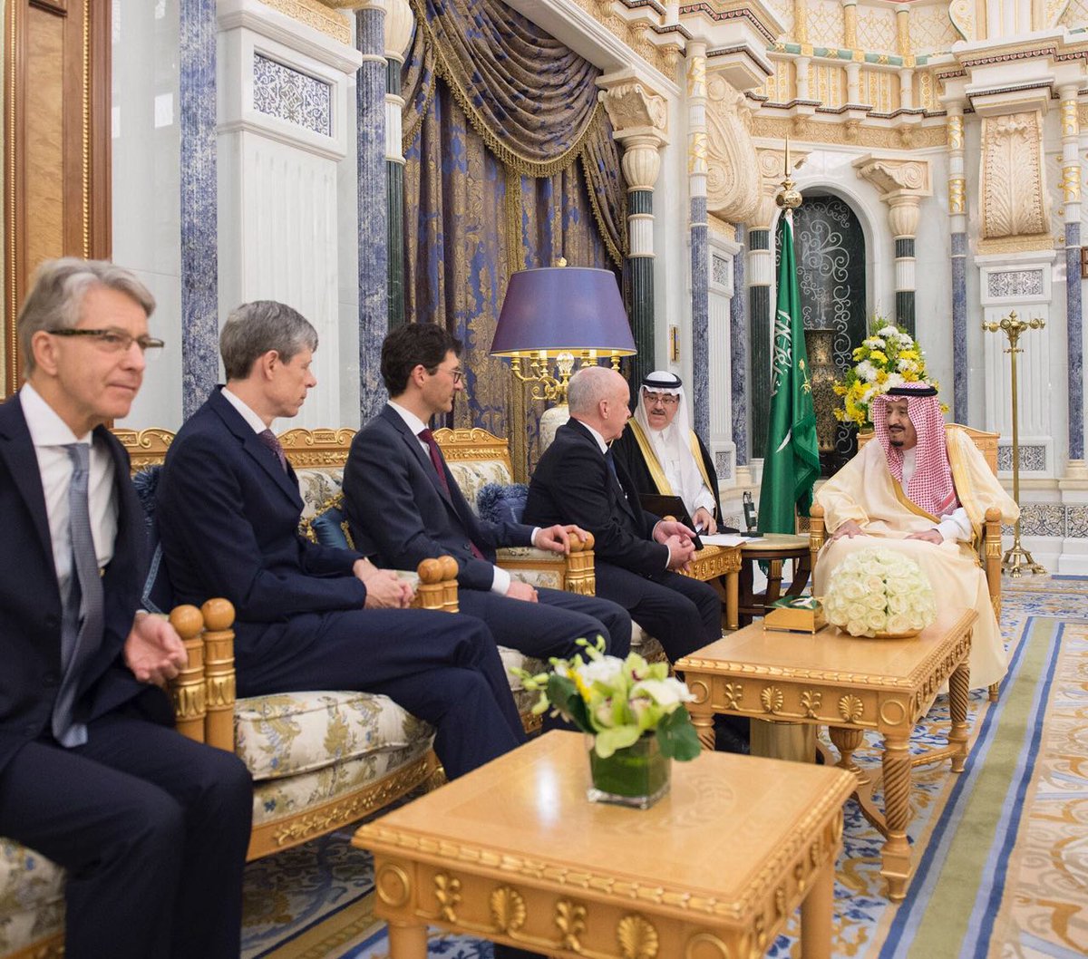 استقبل خادم الحرمين الشريفين الملك سلمان بن عبدالعزيز آل سعود ـ حفظه الله ـ في مكتبه بقصر اليمامة في الرياض اليوم، معالي وزير المالية السويسري نائب رئيس المجلس الفدرالي أولي ماورير.