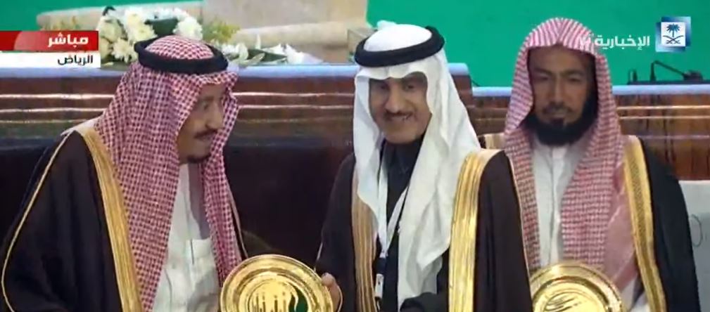 وبعد أن أخذ خادم الحرمين الشريفين الملك سلمان بن عبدالعزيز آل سعود ـ حفظه الله ـ مكانه في المنصة الرئيسة بُدئ الحفل بتلاوة آيات من القرآن الكريم.
