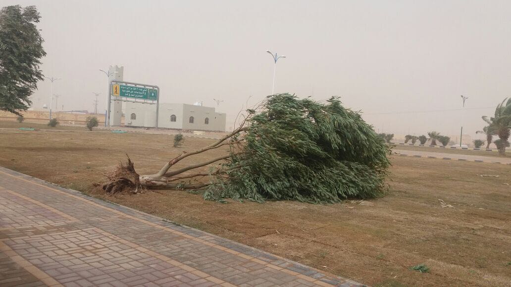 وبدأت هذه الحالة الجوية بهطول أمطار غزيرة سالت على أثرها الأودية والشعاب ، وشهدت المحافظة خلال الساعات الماضية رياحًا شديدة اقتلعت بعض الأشجار.