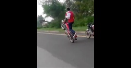 وأظهر مقطع فيديو الشاب وهو يقود دراجته البخارية بسرعة جنونية، مرتكزًا على إطارها الخلفي فقط، الأمر الذي أدى في النهاية إلى سقوطه بطريقة مؤلمة وخطيرة.