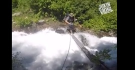 أنقذ شاب صديقه قبل الانجراف في المياه، بعد سقوطه بطريقة مروعة في مجرى مائي.