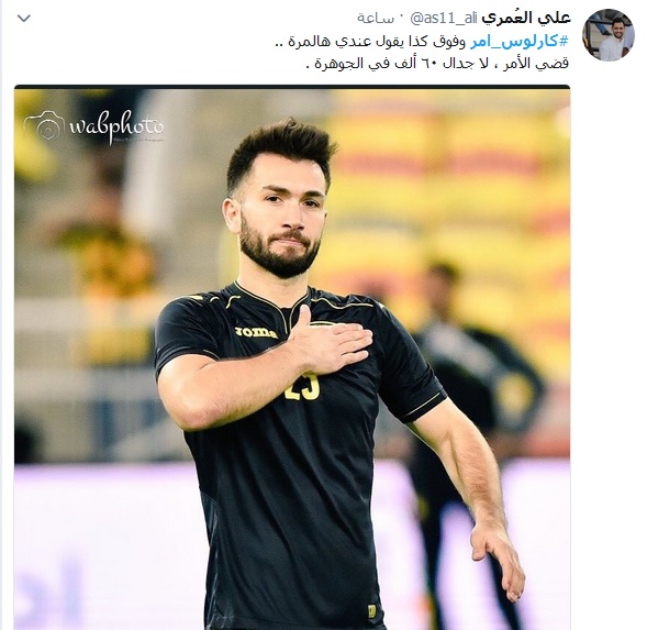 ودشن جمهو نادي الاتحاد هاشتاقًا يحمل اسم كارلوس أمر وبات ضمن قائمة الأكثر تداولًا على “تويتر” في المملكة، بعد تغريدة فيلانويفا بأقل من ساعتين، بعدما تفاعل معه الآلاف من مُحبي العميد، خاصة أن النجم التشيلي يُقدم مستوى مميزًا مع الفريق ويُعتبر من أبرز اللاعبين.