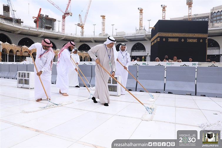 ونفَّذ الوفد خلال الزيارة أعمالَ التنظيف لجزء من المطاف وغسل حجر إسماعيل وتعطير ستار الكعبة المشرفة وتمسيح الحجر الأسود.