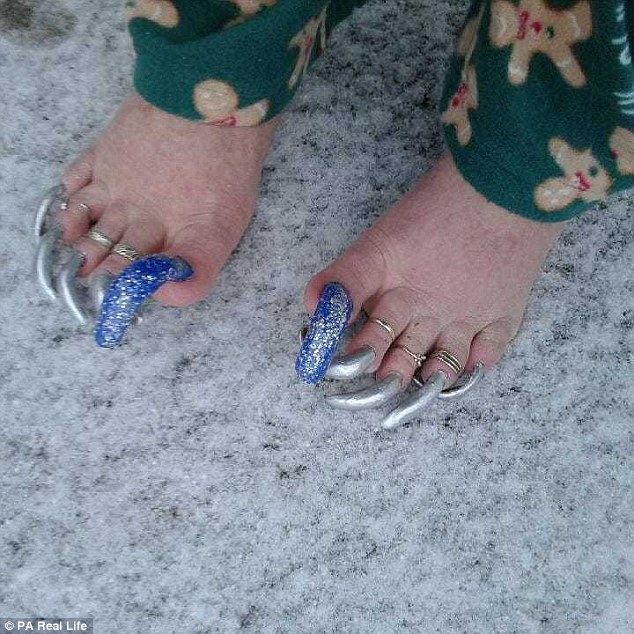وبحسب صحيفة “ديلي ميل” البريطانية، عملت أريندا ستورم، 56 عامًا من ولاية أوهايو، على تربية أظافر قدميها ويديها حتى وصل طولها إلى 15 سم، ثم بدأت في بيع صورها، كما أنها تتفاخر بامتلاكها لهذه الأظافر، وذلك بعد أن قدمت استقالتها من عملها.