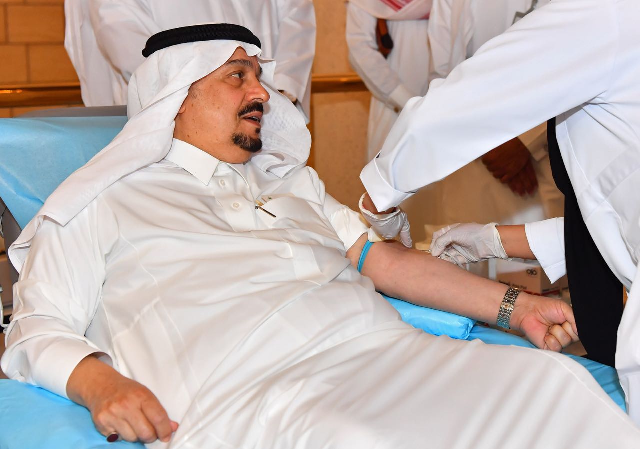 شارك صاحب السمو الملكي الأمير فيصل بن بندر بن عبدالعزيز أمير منطقة الرياض وصاحب السمو الملكي الأمير محمد بن عبدالرحمن نائب أمير المنطقة في حملة التبرع بالدم ” ١٠٠ يوم ” التي تنظمها المديرية العامة للشؤون الصحية بالمنطقة اليوم في قصر الحكم .