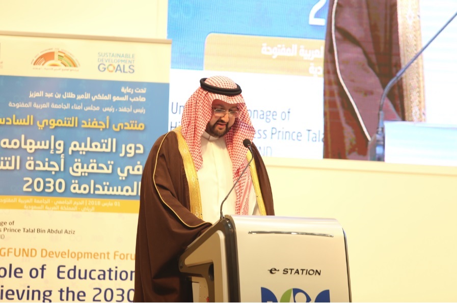 أكد صاحب السمو الملكي الأمير طلال بن عبدالعزيز، رئيس برنامج الخليج العربي للتنمية ( أجفند )، رئيس مجلس أمناء الجامعة العربية المفتوحة أن التنمية الحقيقية معنية أكثر بتعزيز إرادة التغيير المستمر في الفرد عسيري بما يضمن ترسيخ المفاهيم والقيم الإيجابية، وما يستلزم من انفتاح متبصر على التجارب الإنسانية. وقال إن “التغيير الذي يؤدي إلى تحولات تنموية حقيقية لا يكون إلا بالتعليم، والتعليم الجيد الذي يمكن الإنسان من مفاتيح الاندماج الواعي في العصر بل و قيادته. وعلى هذا الأساس فإن “أهداف التنمية المستدامة 2030” التي اعتمدها قادة العالم في سبتمبر 2015، وضعت التعليم في طليعة أهدافها الـ17 .
