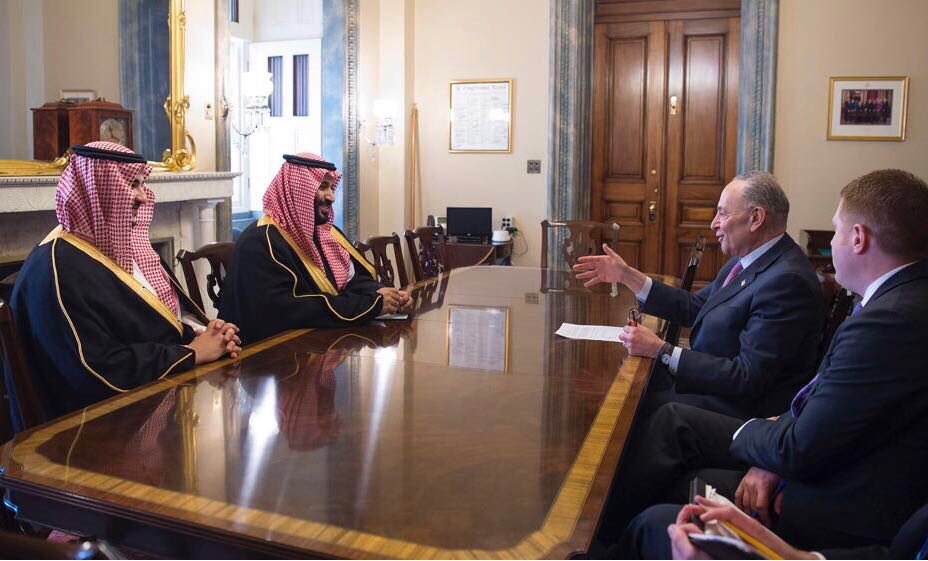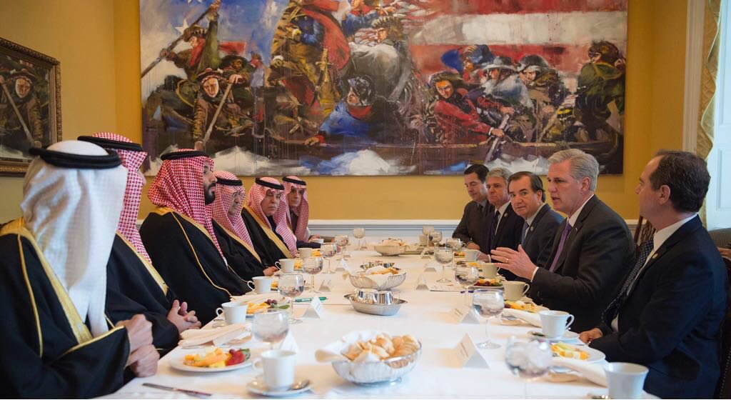 نشر الأمير خالد بن سلمان، سفير خادم الحرمين الشريفين الملك سلمان بن عبدالعزيز للولايات المتحدة الأمريكية، عبر حسابه في “تويتر”، صوراً للقاءات ولي العهد الأمير محمد بن سلمان مع قيادات الكونجرس من الحزبين الجمهوري والديمقراطي.