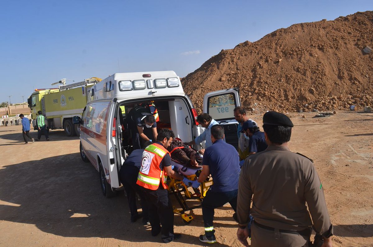 وبيَّنت الصفحة الرسمية للدفاع المدني، بموقع تويتر للتواصل الاجتماعي، أنَّ المقيمين أصيبا بحالة الإغماء؛ نتيجة نقص الأوكسجين داخل المنهل.