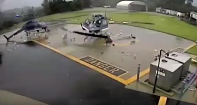 وظهر خلال المقطع، طائرتان على أرضية المطار فيما كانت الأخرى تستعد للهبوط، قبل أن يحدث تصادم بين مروحيتي الطائرتين؛ ما أدى لتحطمهما، وفي هذه الأثناء كان شخص يقف بالقرب من الطائرة الأولى، ونجا بأعجوبة رغم اصطدام جزء من المروحة بجسمه.