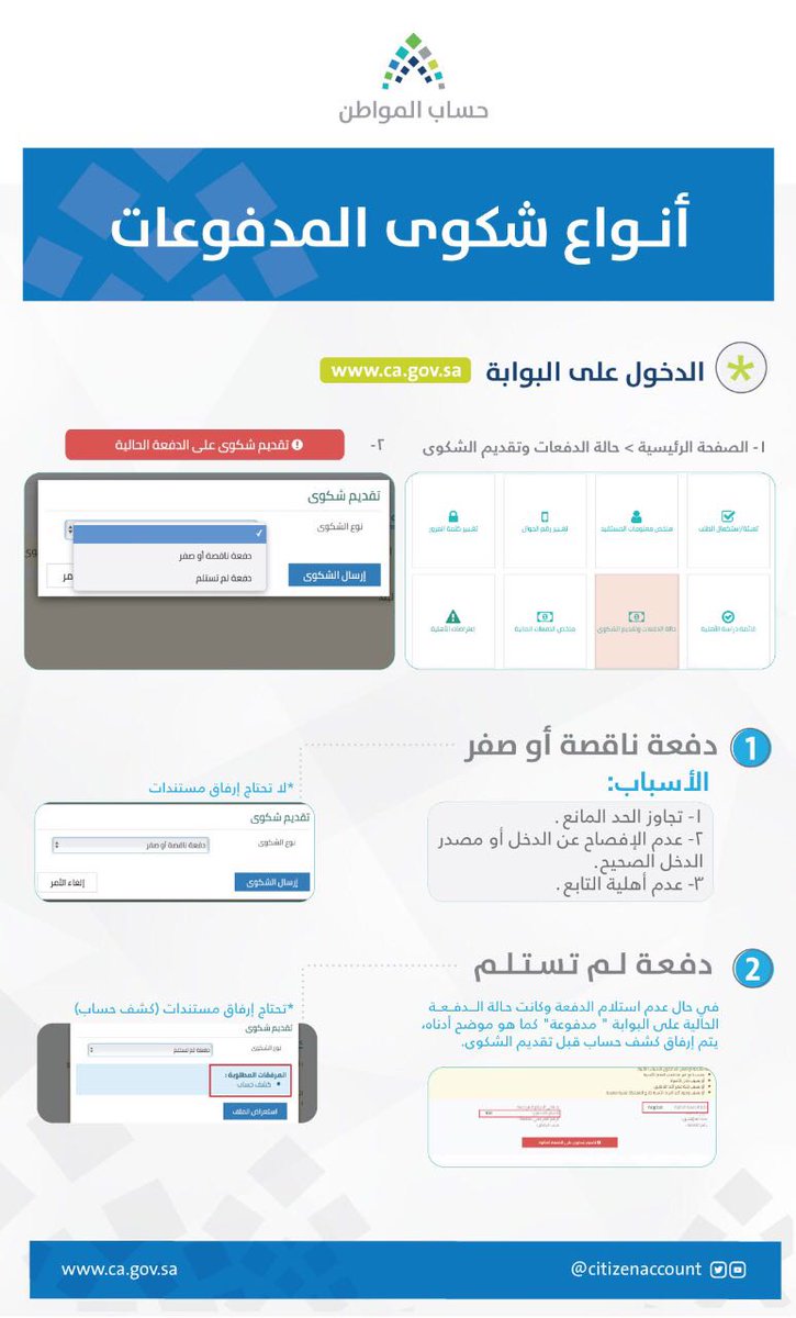 وأضاف حساب المواطن أنه قد تظهر دفعة ناقصة أو صفر لعدة أسباب وهي: