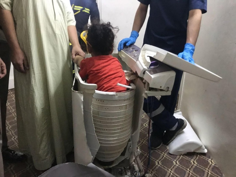 وأوضح الدفاع المدني أنه تم نقل الفرق اللازمة للموقع، حيث اتضح أن الحالة عبارة عن احتجاز طفلة (3 أعوام) داخل نشافة غسالة.