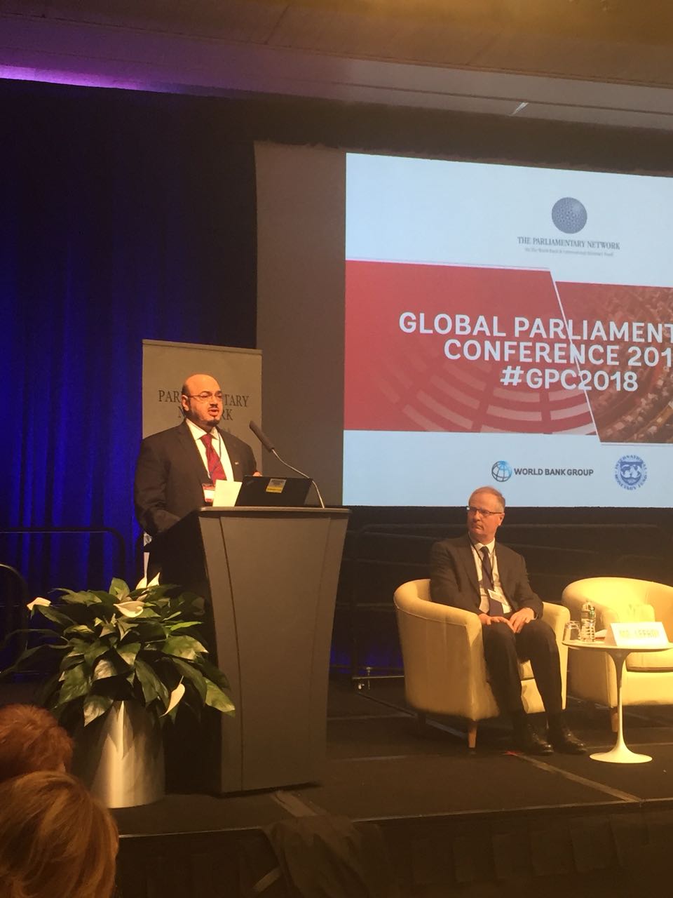 وقدم الدكتور محمد الجفري خلال المؤتمر عرضاً للوفود البرلمانية المشاركة عن رؤية المملكة 2030، مشيراً إلى أن المملكة العربية السعودية بقيادة خادم الحرمين الشريفين الملك سلمان بن عبدالعزيز آل سعود، وبجهودٍ حثيثة من صاحب السمو الملكي الأمير محمد بن سلمان بن عبدالعزيز آل سعود ولي العهد نائب رئيس مجلس الوزراء وزير الدفاع اعتمدت رؤية 2030 في شهر أبريل 2016م وهي رؤية طموحة تهدف إلى الارتقاء بكافة مستويات الحياة في المملكة بدءاً من تقليل الاعتماد على النفط وتنويع مصادر الدخل، والمحافظة على الموارد الاقتصادية وتعظيم العوائد منها.