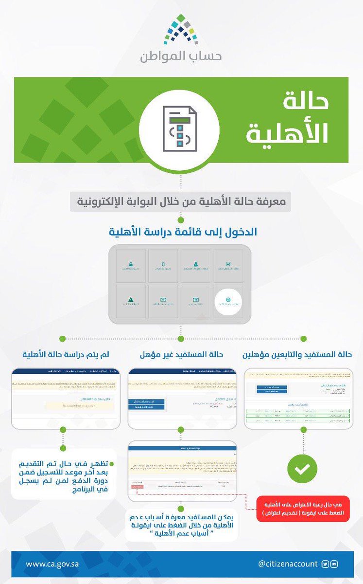 وأشار حساب المواطن إلى أنه عند الاعتراض على عدم أهلية أحد التابعين يلزم على رب الأسرة ما يلي: