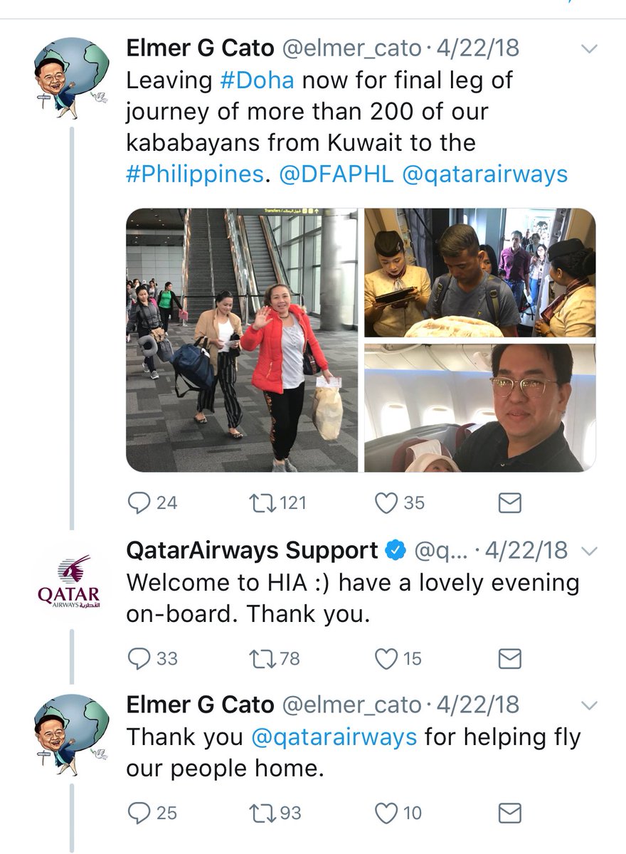 استفزت الخطوط القطرية، أمس الأحد، الشعب الكويتي الشقيق، وذلك بتكفلها بعودة الفلبينيين لبلدهم مجانًا في وسط الأزمة الدبلوماسية بين الفلبين والكويت.