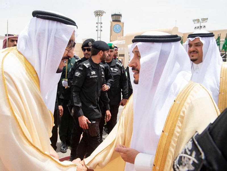 وقد غادر في معية خادم الحرمين الشريفين – حفظه الله – صاحب السمو الملكي الأمير عبدالإله بن عبدالعزيز آل سعود المستشار الخاص لخادم الحرمين الشريفين، وصاحب السمو الأمير خالد بن فهد بن خالد، وصاحب السمو الملكي الأمير منصور بن سعود بن عبدالعزيز، وصاحب السمو الملكي الأمير طلال بن سعود بن عبدالعزيز، وصاحب السمو الأمير خالد بن سعد بن فهد، وصاحب السمو الملكي الأمير خالد بن بندر بن عبدالعزيز مستشار خادم الحرمين الشريفين، وصاحب السمو الملكي الأمير الدكتور منصور بن متعب بن عبدالعزيز وزير الدولة عضو مجلس الوزراء مستشار خادم الحرمين الشريفين، وصاحب السمو الأمير فهد بن عبدالله بن عبدالعزيز بن مساعد، وصاحب السمو الملكي الأمير سطام بن سعود بن عبدالعزيز، وصاحب السمو الملكي الأمير تركي بن محمد بن فهد بن عبدالعزيز المستشار في الديوان الملكي، وصاحب السمو الملكي الأمير سعود بن سلمان بن عبدالعزيز، وصاحب السمو الملكي الأمير تركي بن سلمان بن عبدالعزيز، وصاحب السمو الملكي الأمير عبدالله بن خالد بن سلطان بن عبدالعزيز المستشار في الديوان الملكي، وصاحب السمو الملكي الأمير نايف بن سلمان بن عبدالعزيز، وصاحب السمو الملكي الأمير عبدالمجيد بن عبدالإله بن عبدالعزيز.