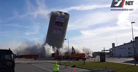 وقعت عملية الهدم في الدنمارك، وأظهرت سلسلة من الصور عبر “فيسبوك” انهيار برج يبلغ طوله 53 مترًا فوق مبنى يضم مكتبة محلية ومركزًا ثقافيًّا في بلدة فوردينجبورج.