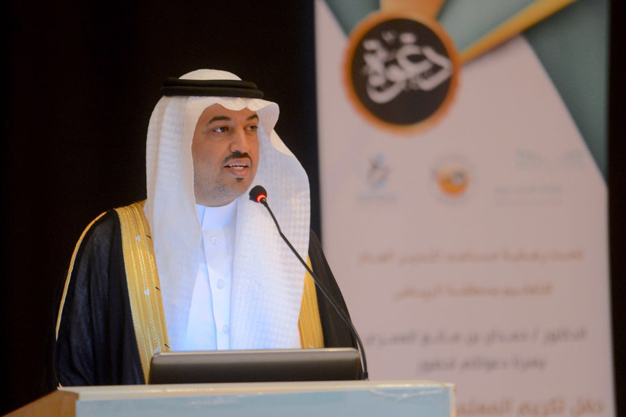 وتساءل بفخر: نسألكم بالله من الناس من يقف بين يديه يومياً هذا الكم من الصغار يستمعون إليه وقد أظعنوا آذانهم وأسماعهم وسلموا عقولهم ينتظرون منك التوجيه والتعليم والتغذية بين يديه، فلذا أيها المعلمون أزف إليكم هذه البشارة، بشر بها النبي المصطفى صلى الله عليه وسلم قال: ” إن الله ملائكته وأهل السماوات وأهل الأرض حتى النملة في جحرها والحوت ليصلون على معلم الناس الخير”، أيها المعلم المتميز لك بصمة في أبنائنا سيكونون متميزين كتميزك أنت يا أخي العزيز، كأم موسى ترعى وترضع وليدها وتأخذ أجرها، وهذا الحفل تميز للمعلم ليس له وحده بل هو تميز للمدرسة، وتميز لقائد المدرسة الأخ الحاني للمعلم المتميز المعزز لنشاطه، وهو أيضاً تميز للمشرف الزائر وتميز للمكتب وتميز لإدارة التعليم فكلنا هنا شركاء نجاح في هذا الحفل التعليمي والصرح التربوي الكبير، وهذا الوطن العظيم ينتظر منا العطاء وانتم أهل الوفاء “.