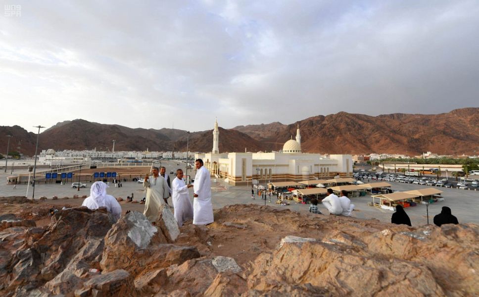 يقبل الزائرون خلال شهر رمضان على مسجد وميدان سيد الشهداء في المدينة المنورة، الذي يعد معلماً بارزاً دارت في محيطه أحداث معركة أُحد الشهيرة.