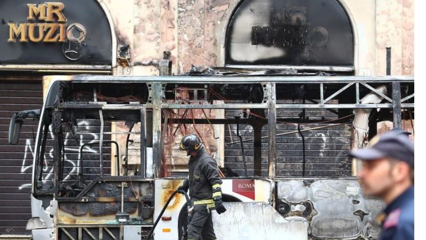 وشهد عام 2017 تدمير أو تلف نحو 20 حافلة في روما بسبب حرائق.