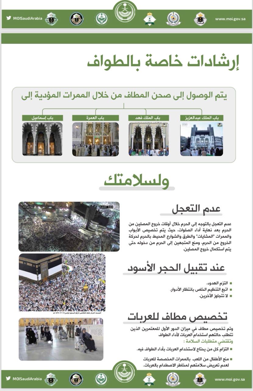 قدمت القطاعات الأمنية مجموعة من الإرشادات الخاصة بالطواف؛ لضمان سلامة الزوار والمعتمرين خلال شهر رمضان المبارك.