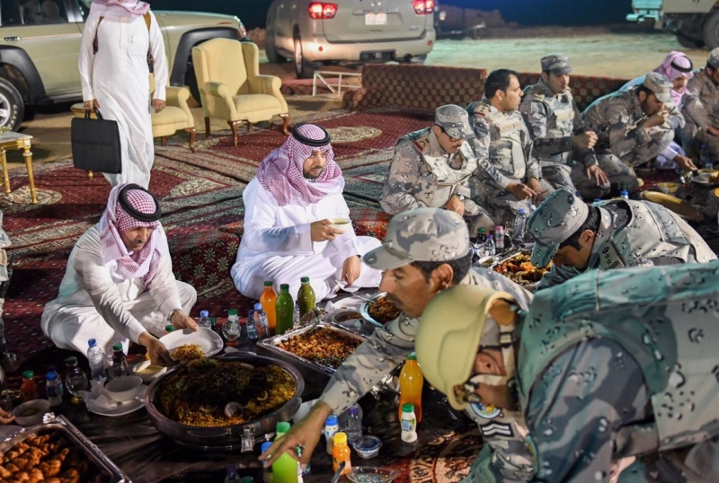 وشارك فيصل بن خالد ضباط وأفراد حرس الحدود المرابطين طعام الإفطار، وصلاة المغرب، في إحدى النقاط الحدودية، فيما اطلع على الإمكانات المتطورة التي وفرتها القيادة الرشيدة لحرس الحدود.